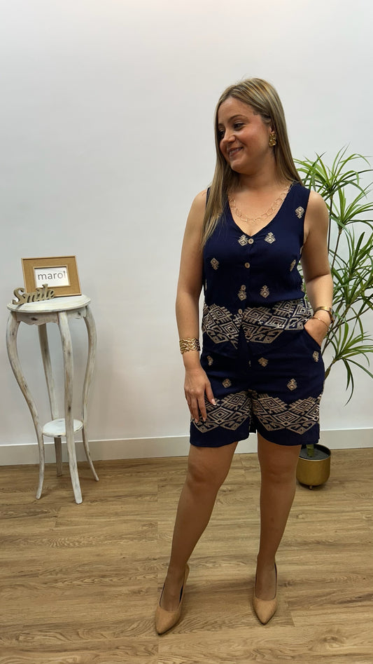 AgotadoCONJUNTO BORDADO BERMUDA AZUL