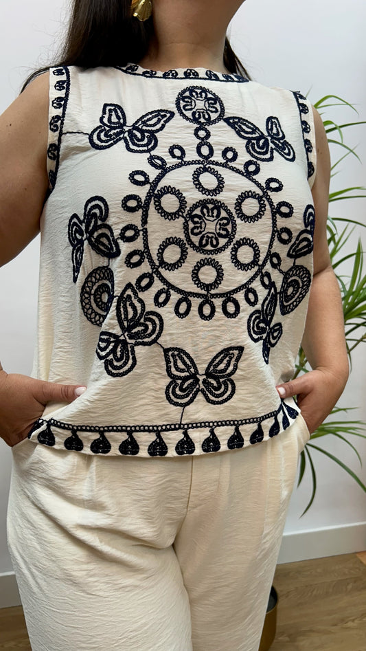 AgotadoCONJUNTO BORDADO BERMUDA BEIGE